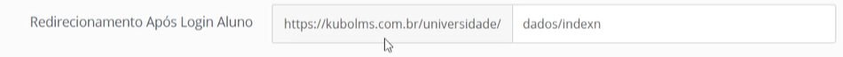 É possível inserir a página que o aluno será direcionado após realizar o login. Caso deseje que o aluno seja direcionado à página principal, página dos treinamentos ou de alguma trilha, basta copiar o endereço que contém após https://kubolms.com.br/universidade/ na URL e colar. Por exemplo: